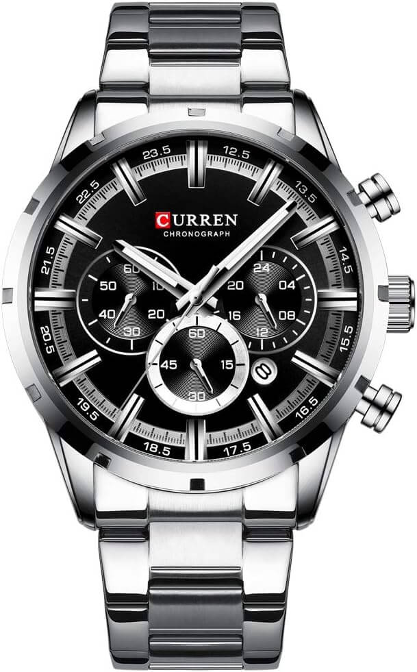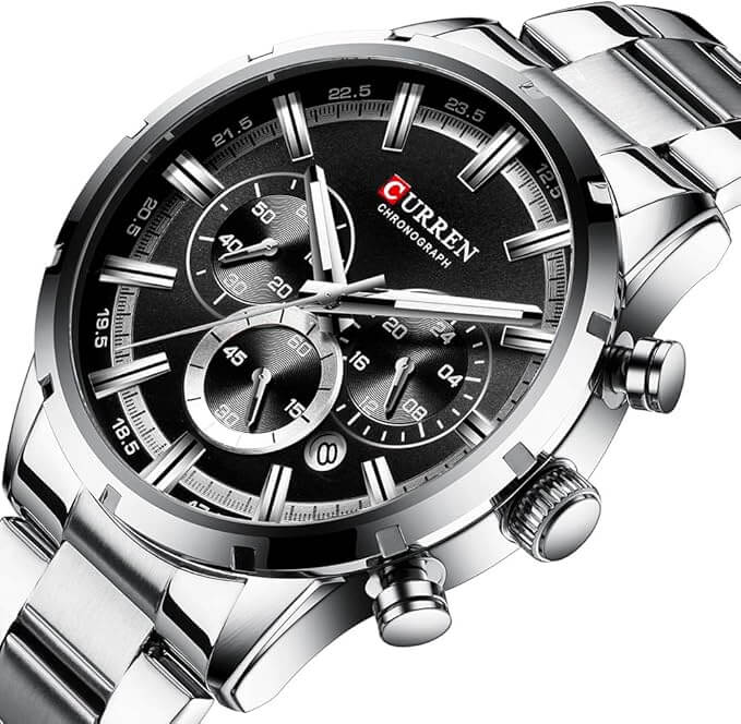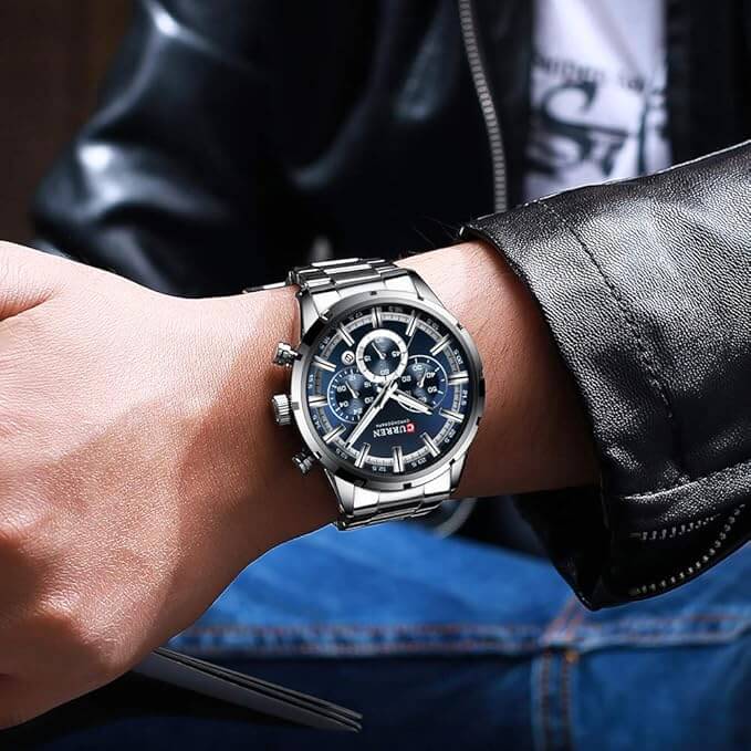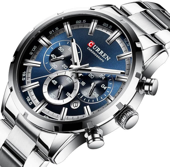 ساعة Curren 8355 تجمع بين الأناقة الكلاسيكية والطابع العصري الرياضي، مع سوار معدني متين يضيف لمسة من الفخامة والرجولة.